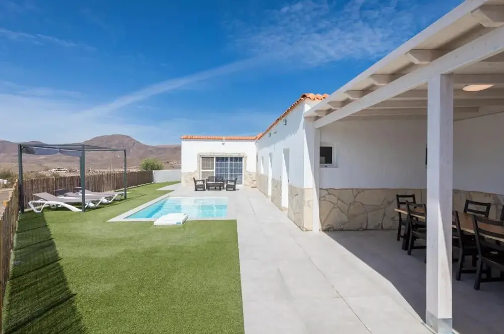 Sun Terrace and Garden: Villa Gregorio i Marcos Sanchez erbjuder en solterrass och en frodig trädgård. Gästerna kan koppla av vid året runt utomhuspool med fantastisk havsutsikt. Gratis WiFi är tillgänglig i hela fastigheten. Bekväma boende: Villan har fyra sovrum och fyra badrum, inklusive ett vardagsrum. Varje rum upprätthålls med höga standarder för renlighet, vilket säkerställer en bekväm vistelse. Utomhusfaciliteter: En utomhus sittplats och picknickplats ger gott om utrymme för fritid. Gratis privat parkering på plats finns tillgängligt för gäster. Lokala attraktioner: Beläget 30 mil från Fuerteventura Airport, är Villa Gregorio nära Jandia Golf (21 MI) och Fuerteventura Golf Club (27 MI). Eco Museo de Alcogida är 27 mil bort. Aktiviteter som fiske, vindsurfing, vandring, cykling, dykning och snorkling finns tillgängliga.